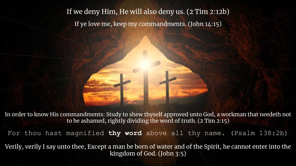 If we deny Him, He will also deny us. (2 Tim 2:12b)